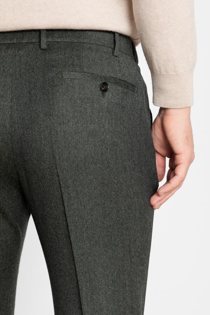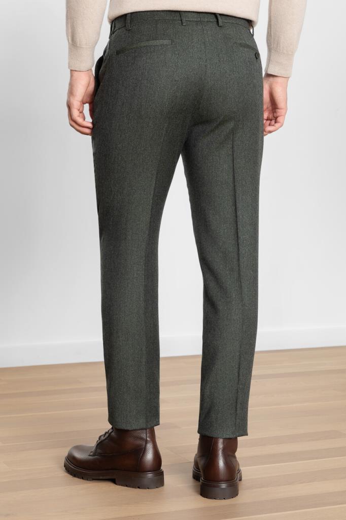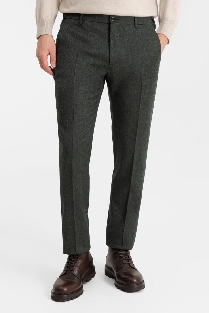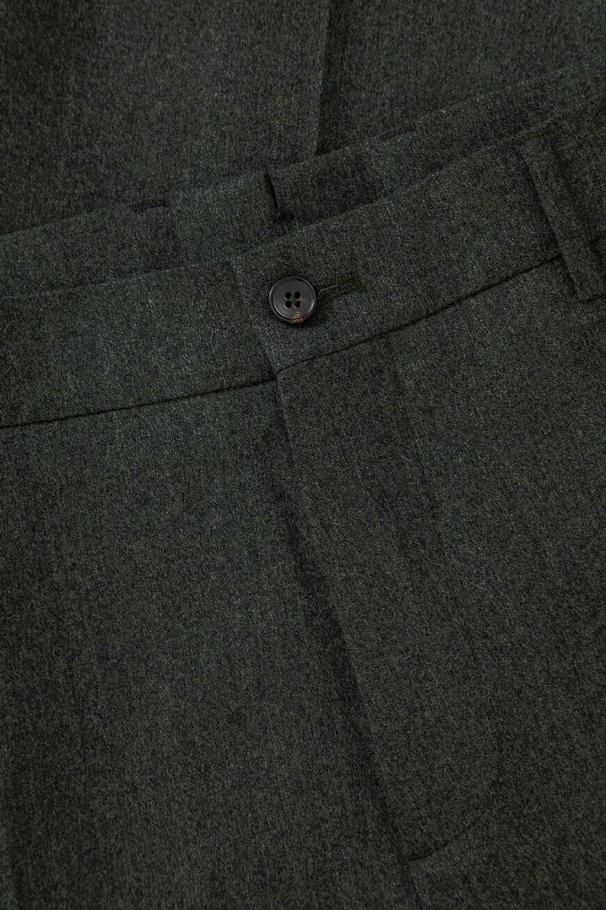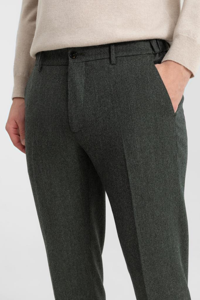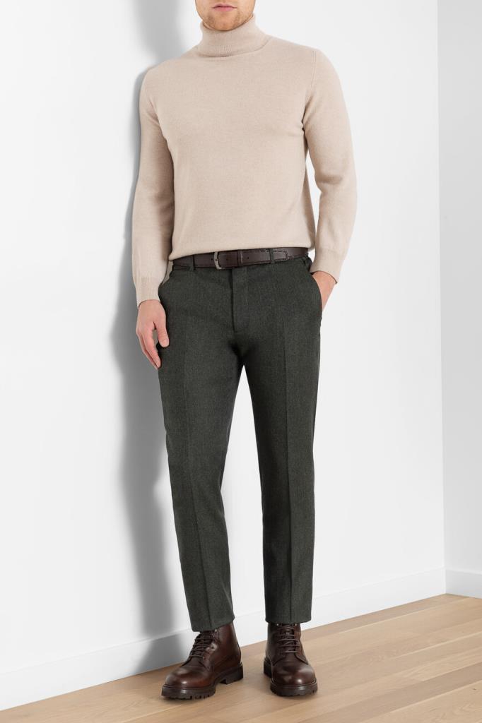 Темно-зеленые брюки Johnny Manglani — базовая модель на холодный сезон. Брюки прямого кроя выполнены из вирджинской шерсти, благодаря которой они отлично согревают и не вызывают раздражения. Модель прямого кроя со шлевками на поясе отлично садится по фигуре и не стесняет движения. Составьте комфортный повседневный образ с бежевым свитером из той же коллекции и коричневыми дерби.