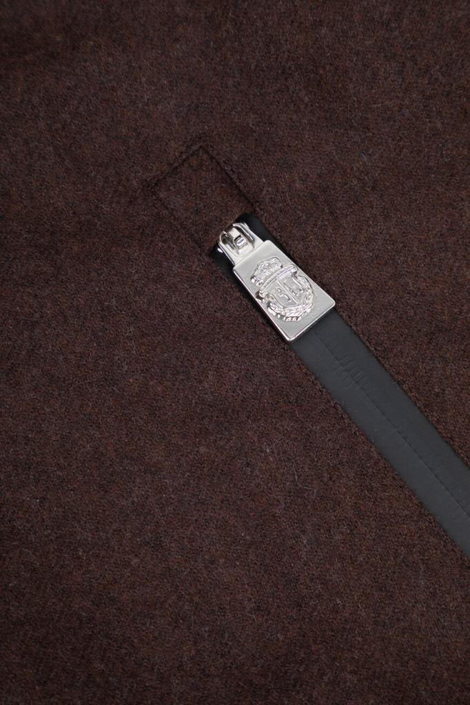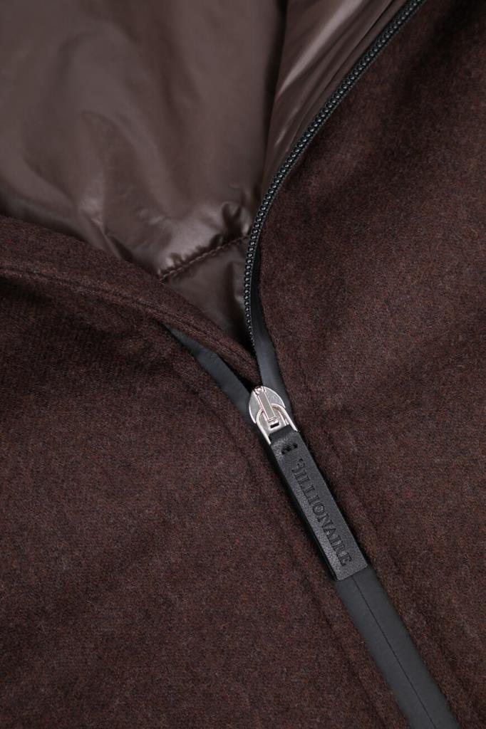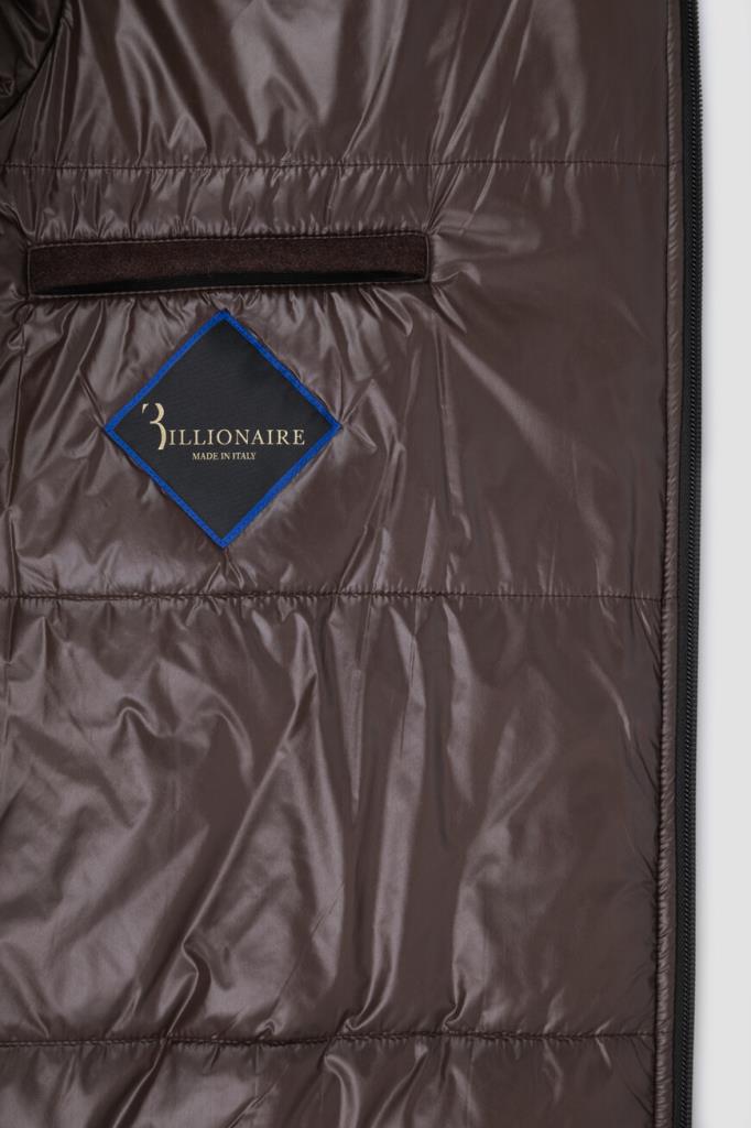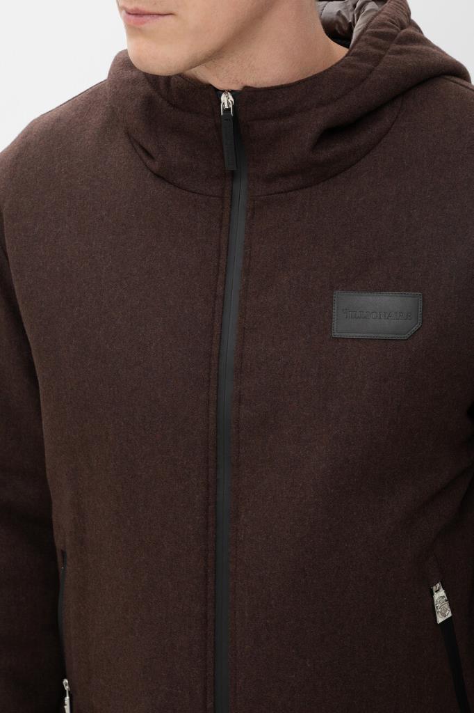 Шерстяная куртка тёмно-коричневого цвета от Billionaire. Добавление синтетических волокон в состав ткани гарантирует высокую прочность и эластичность. Фасон изделия предполагает прямой силуэт и застёжку на встречную молнию с двумя брендированными бегунками и чёрной матовой отделкой. Грудь украшает прямоугольная кожаная нашивка чёрного цвета с тиснёным логотипом. Модель дополнена блестящей стёганой подкладкой из прочного нейлона и наполнителем из износостойкого полиэфира, обеспечивающими комфорт и удобство в носке.