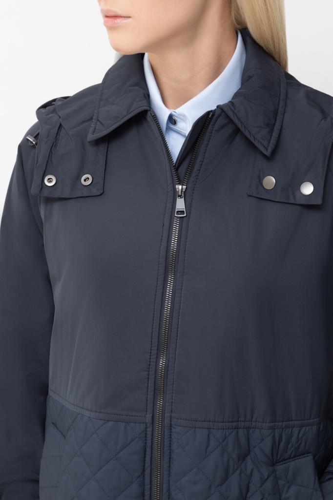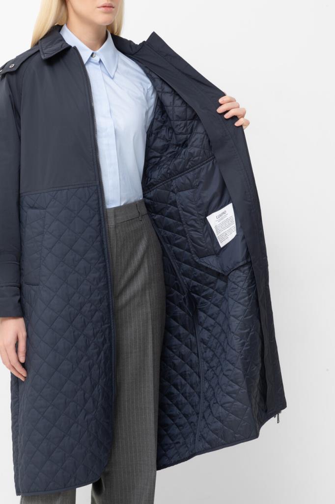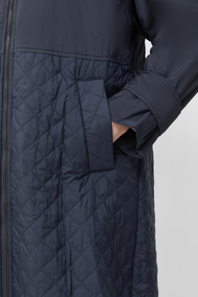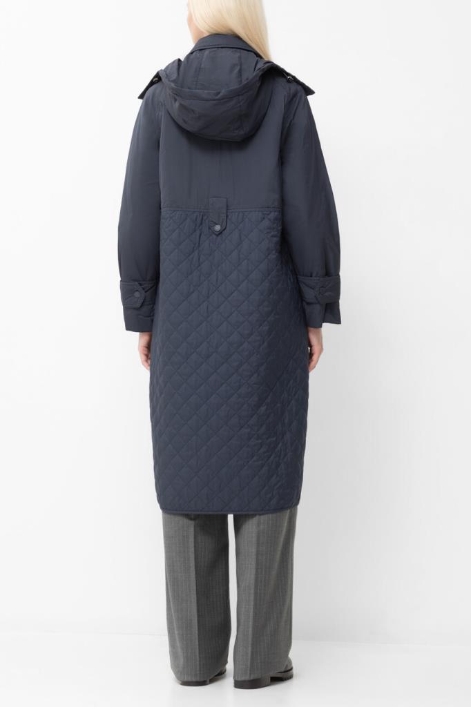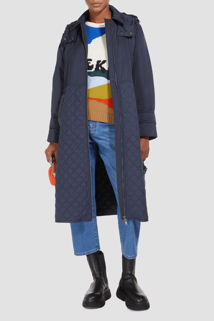 Утеплённое пальто из водонепроницаемой ткани от Max Mara. Нижняя часть изделия дополнена ромбовидной стёжкой, придающей объём. Посадку удобно регулировать при помощи широкого пояса с пряжкой в тон. Модель тёмно-синего цвета с рубашечным воротником станет подходящим вариантом для переменчивой погоды: прочный нейлон не продувается ветром и не промокает, а наполнитель LUXEPAD® на основе натуральной верблюжьей шерсти, гладкого шёлка и полиэфира хорошо сохраняет тепло.