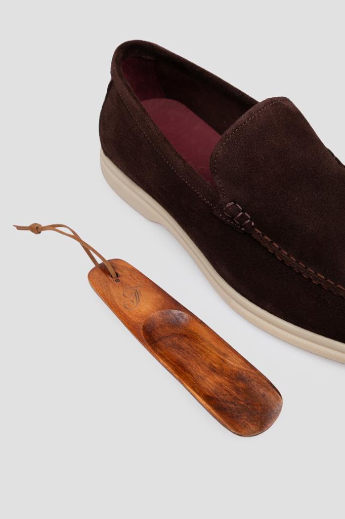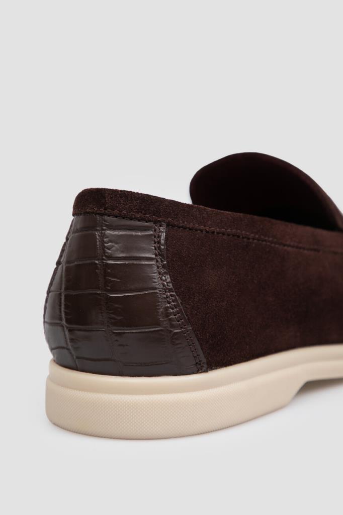 Тёмно-коричневые лоферы FARGONI станут частью Вашего повседневного гардероба. Для создания модели с прошитым рельефным швом выбрана мягкая бархатистая замша, которая быстро адаптируется к форме стопы. Декором выступает вставка из фактурной кожи крокодила на заднике в тон. Дополнительный комфорт обеспечивает гибкая резиновая подошва с небольшим утолщением в области устойчивого каблука. В комплекте идёт коричневый деревянный рожок для удобства надевания.