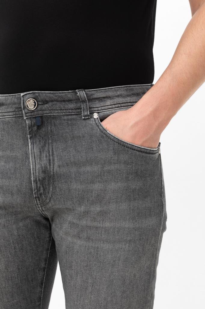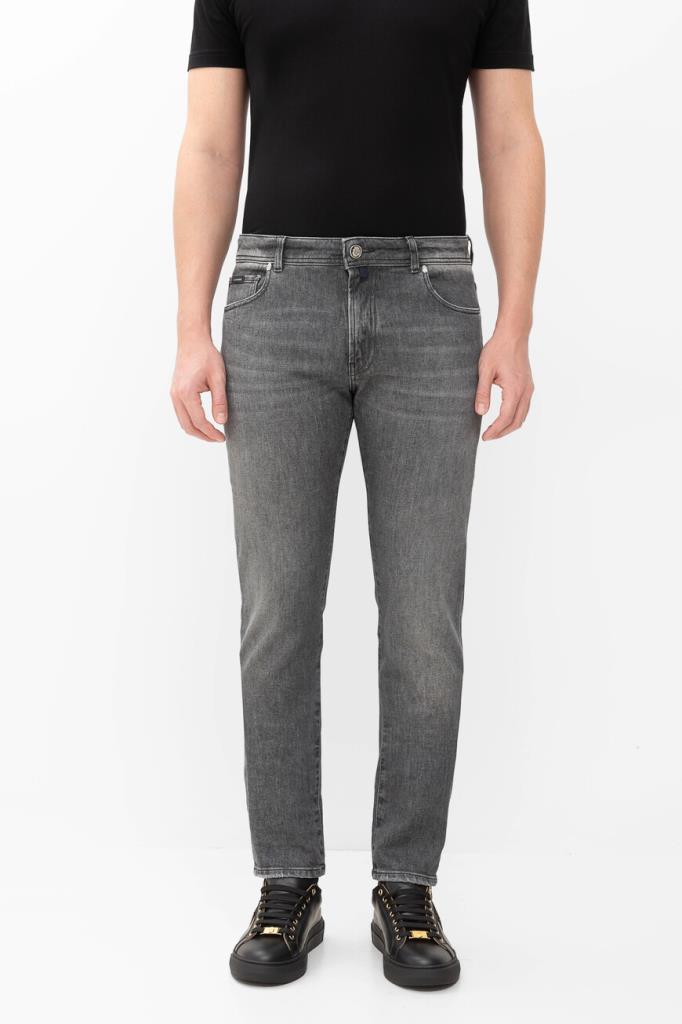 Хлопковые джинсы Billionaire с дизайнерскими потёртостями. Добавление небольшого количества эластичных волокон в состав материала обеспечивает комфортную посадку модели по фигуре. Изделие выполнено в сером оттенке и декорировано чёрными кожаными накладками с логотипом и гербом Дома на маленьком кармане спереди и заднем кармане. Принадлежность прямых джинсов бренду также обозначена двумя крупными вышитыми литерами «B» сзади.
