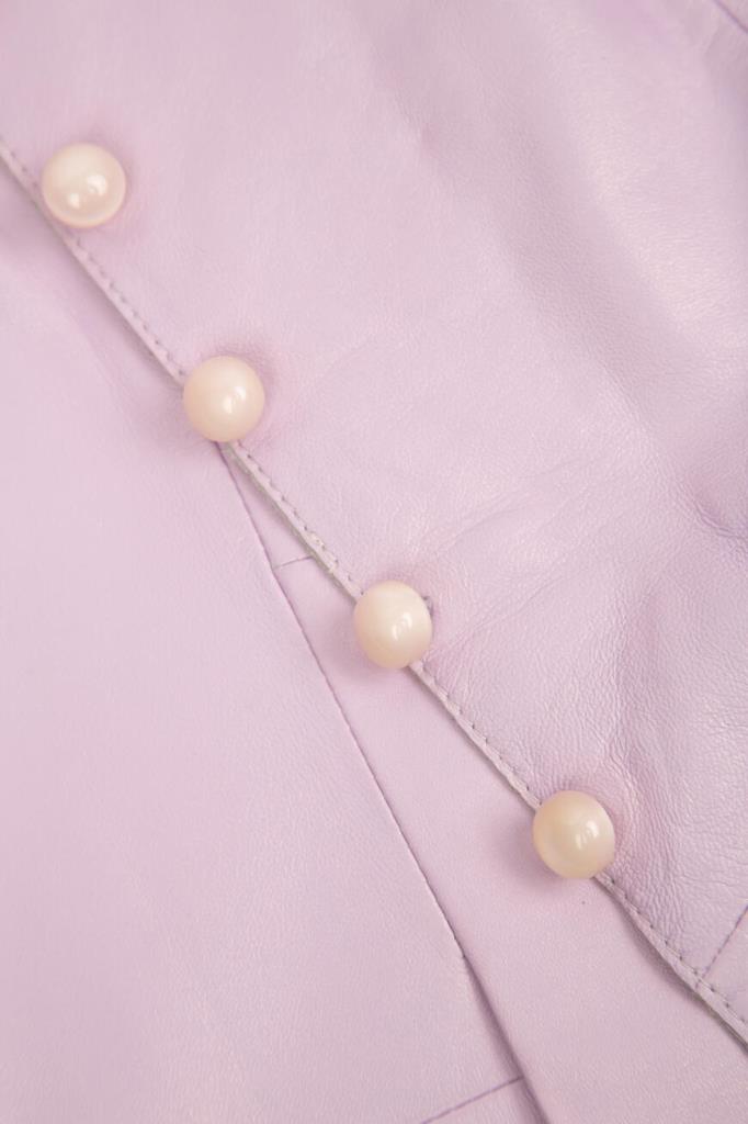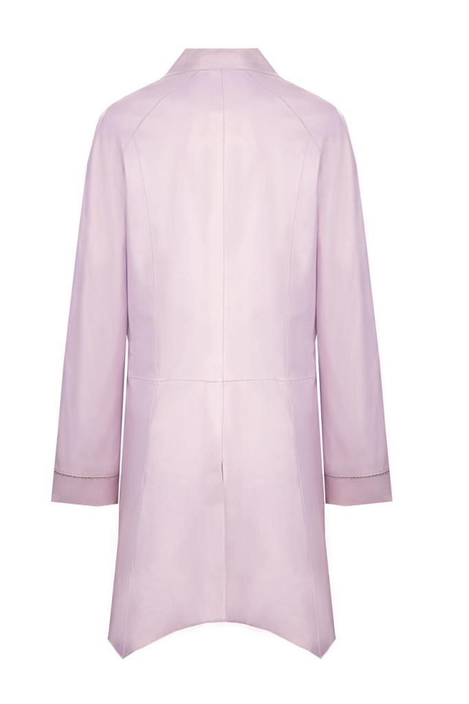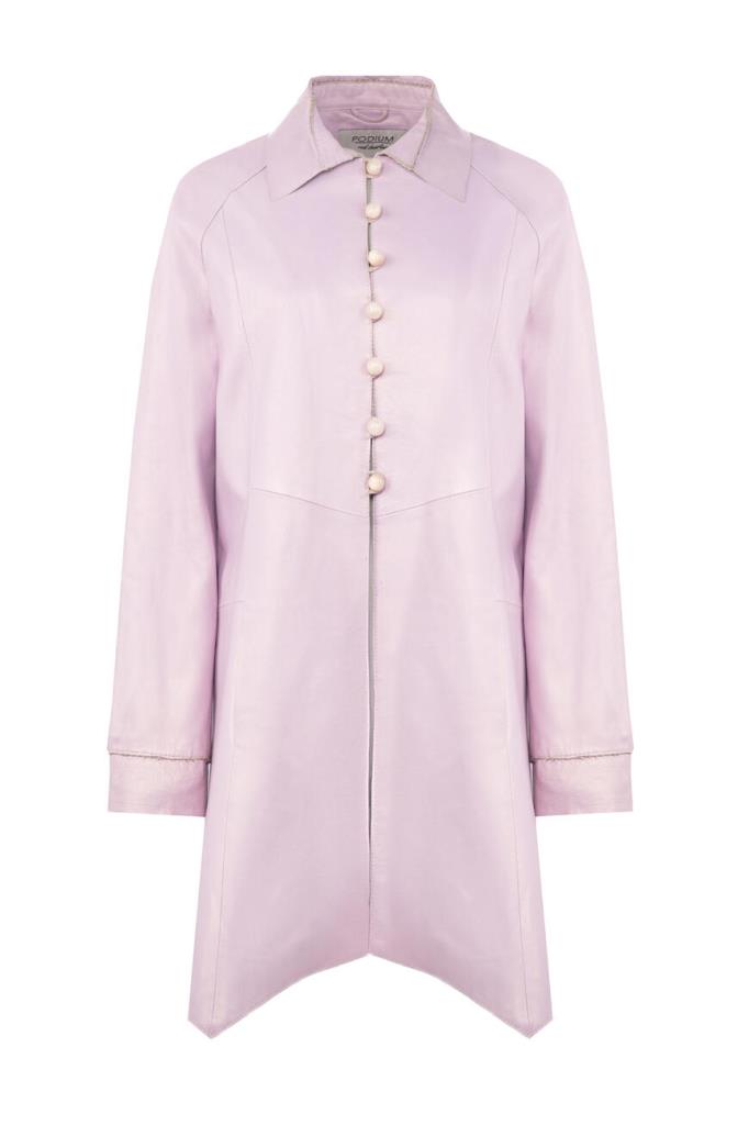 Эффектное женское пальто-френч Podium из мягкой натуральной кожи телёнка изысканного нежного пастельно-лавандового оттенка.