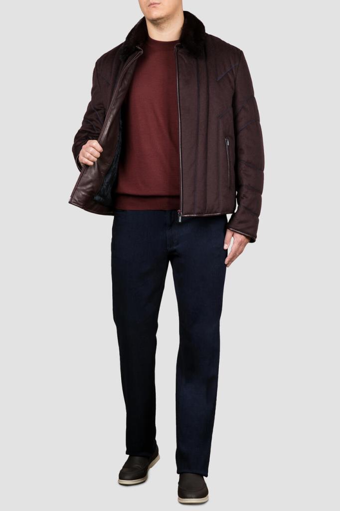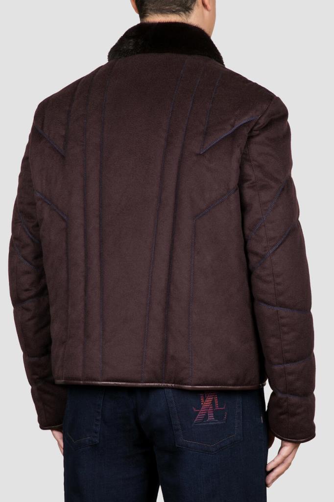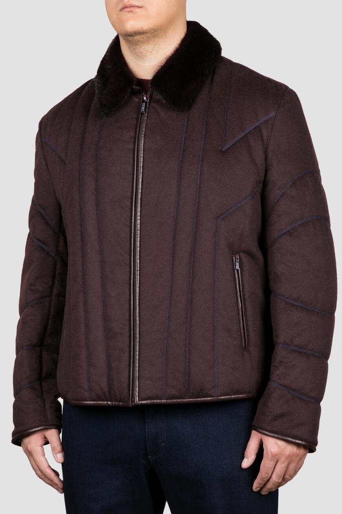 Утепленная мужская куртка Zilli из плотного бордового кашемира с кожаной окантовкой. Модель прямого свободного кроя на молнии с прорезными карманами и брендированной шелковой подкладкой. Фишка модели - два сменных воротника: меховой и кожаный.