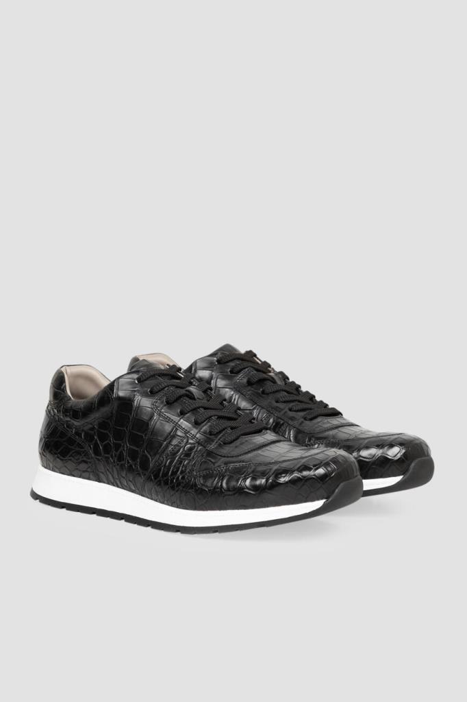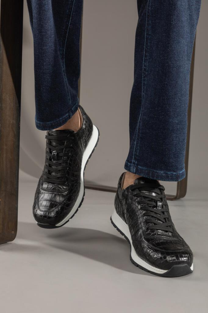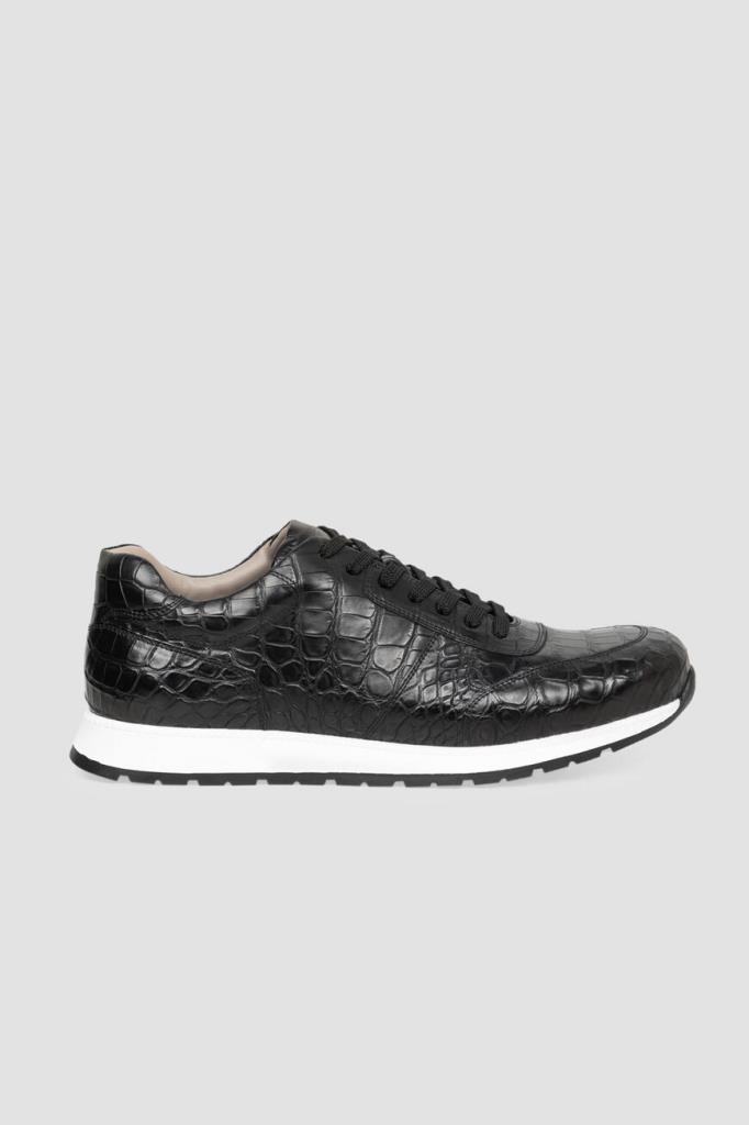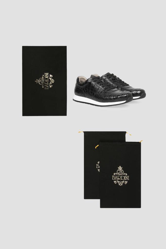 Роскошные кроссовки ручной работы от Bardini. Эффектная модель выполнена из натуральной кожи нильского крокодила базового чёрного цвета, тщательно отобранной вручную. Задник и язычок кроссовок наполнены вспененным полимерным материалом, который обеспечивает максимальный комфорт внутреннего пространства и отличное “мягкое” прилегание обуви.