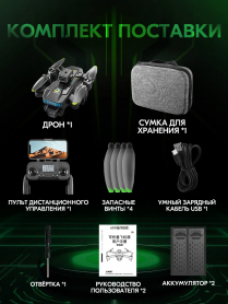 Беспилотник; пульт дистанционного управления; Аккумулятор*3; Винты8 шт.; USB кабель1; отвертка1; Инструкция2; Держатель для телефона1