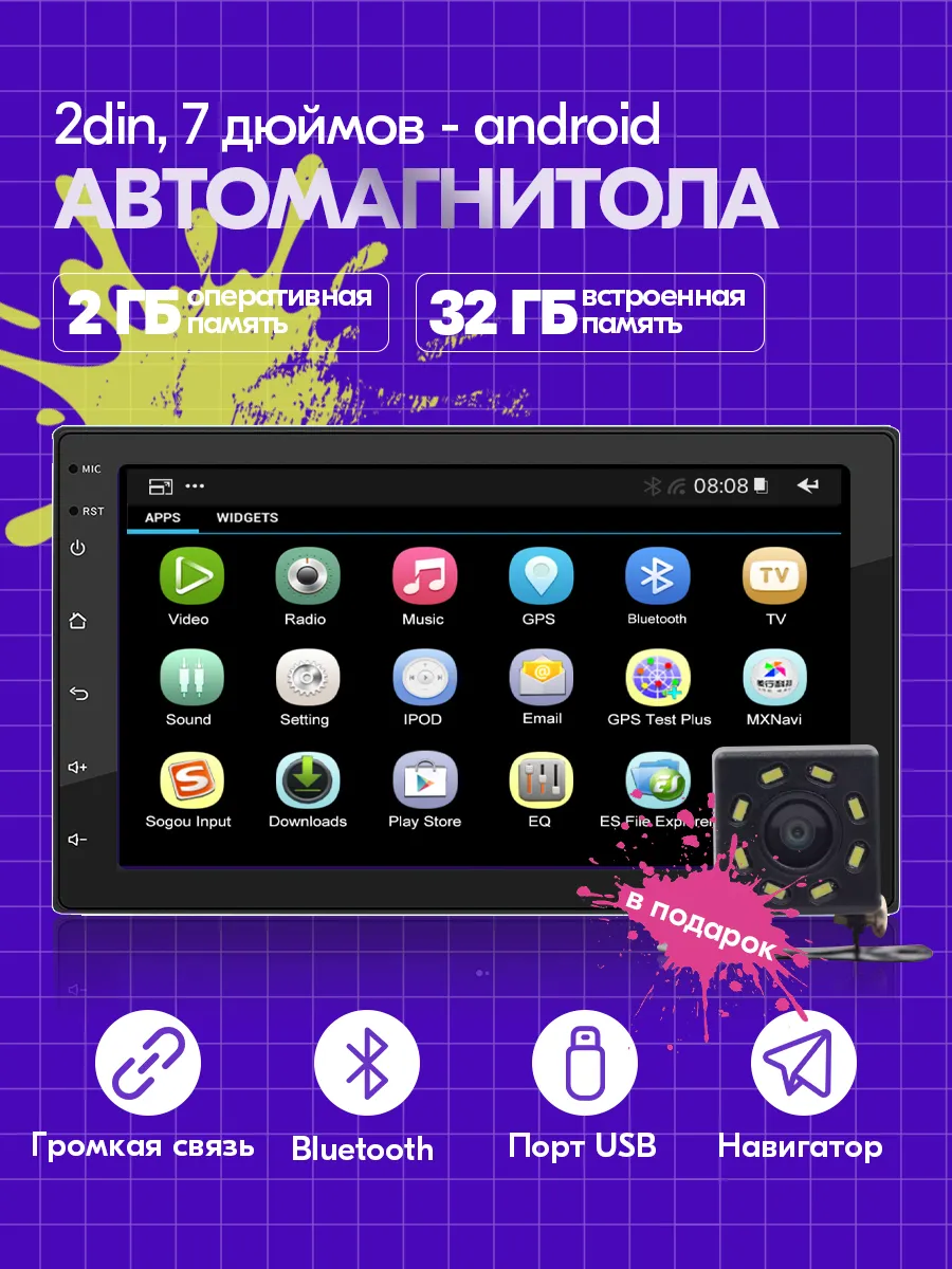 Устройство также поддерживает функцию задней камеры, что значительно упрощает парковку и маневрирование. Встроенные высококачественные динамики и микрофон обеспечивают отличное качество звука и четкость голосовых вызовов. Многоязычная система интерфейса делает его доступным для пользователей.