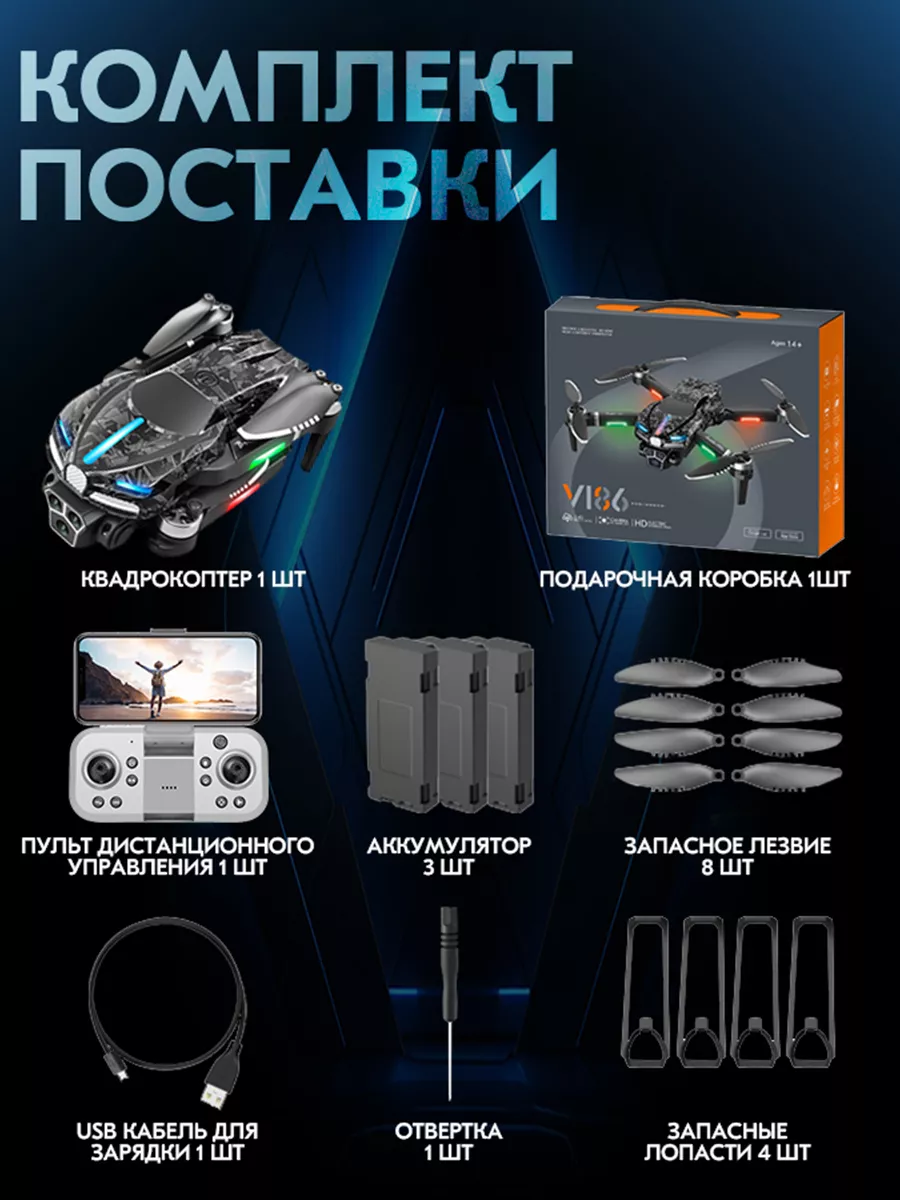 V186 Pro — это высокопроизводительный радиоуправляемый дрон с 4K камерой, который подходит для пользователей всех возрастов и любых уровней подготовки. Независимо от того, ищете ли вы новое захватывающее развлечение или профессиональный инструмент для аэрофотосъёмки, V186 Pro подарит вам уникальный опыт полета.