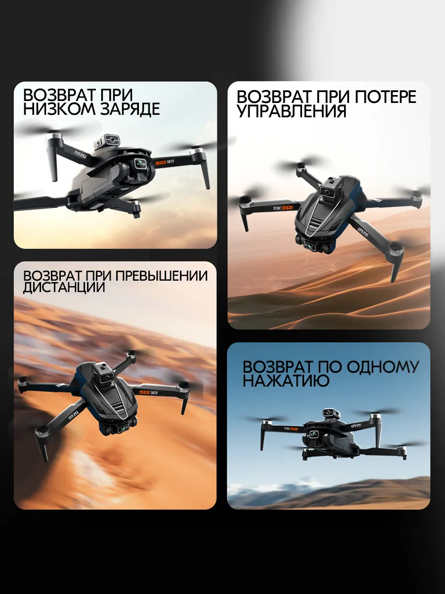 Функции возврата: автоматический возврат при низком заряде, потере связи или по команде кнопки.