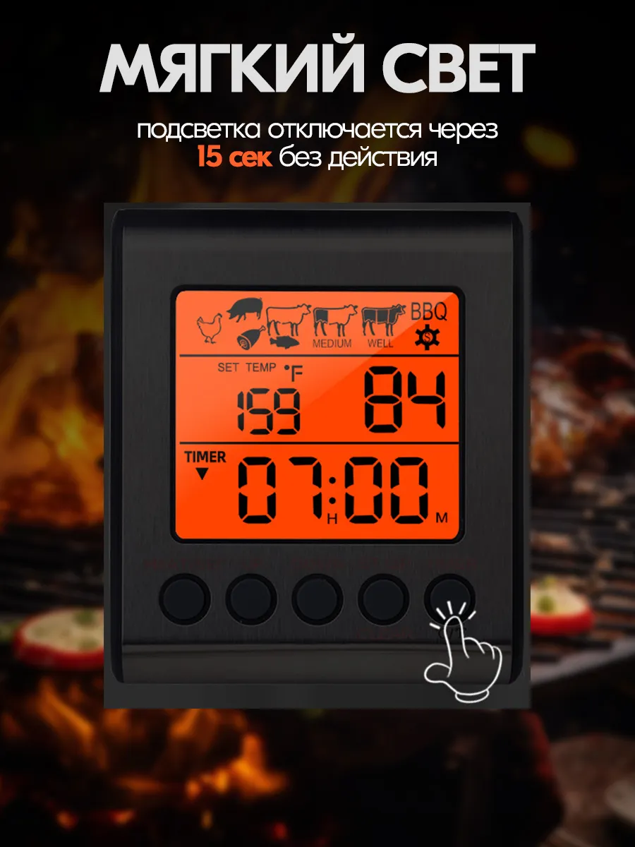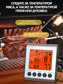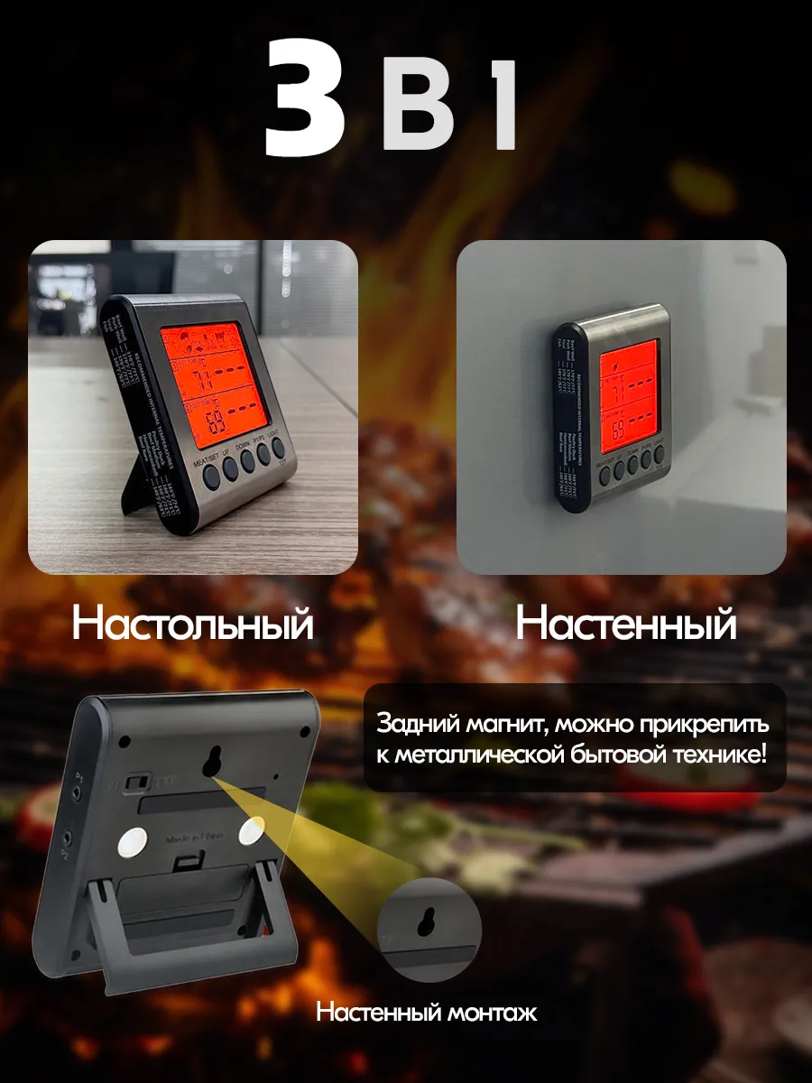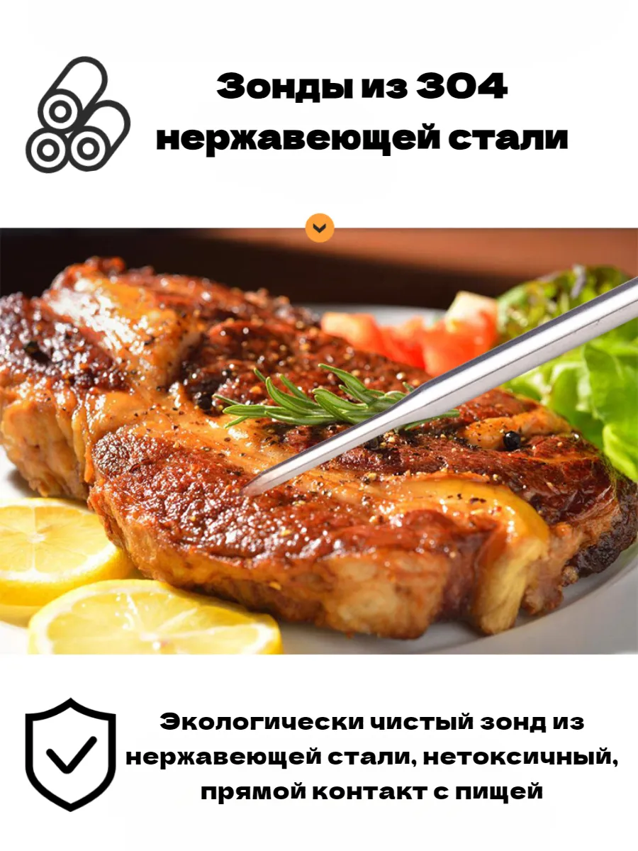 Кухонный термометр; 测试测试; Держатель для термометра 2 шт; ААА Батарейка типа 1 шт; Выносной термощуп на проводе 2 шт