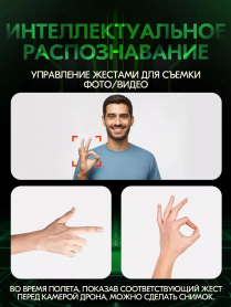 Функция умного следования (Intelligent Follow), кругового полета, контроля жестами, ручного управления с помощью ладони, а также точное расположение по карте и возможность дистанционного контроля дрона через мобильное приложение.
