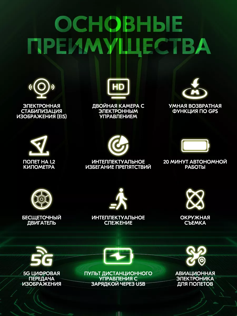 Встроенная система GPS позволяет дрону точно позиционироваться, автоматизировать возврат домой при потере сигнала или низком заряде аккумулятора.
